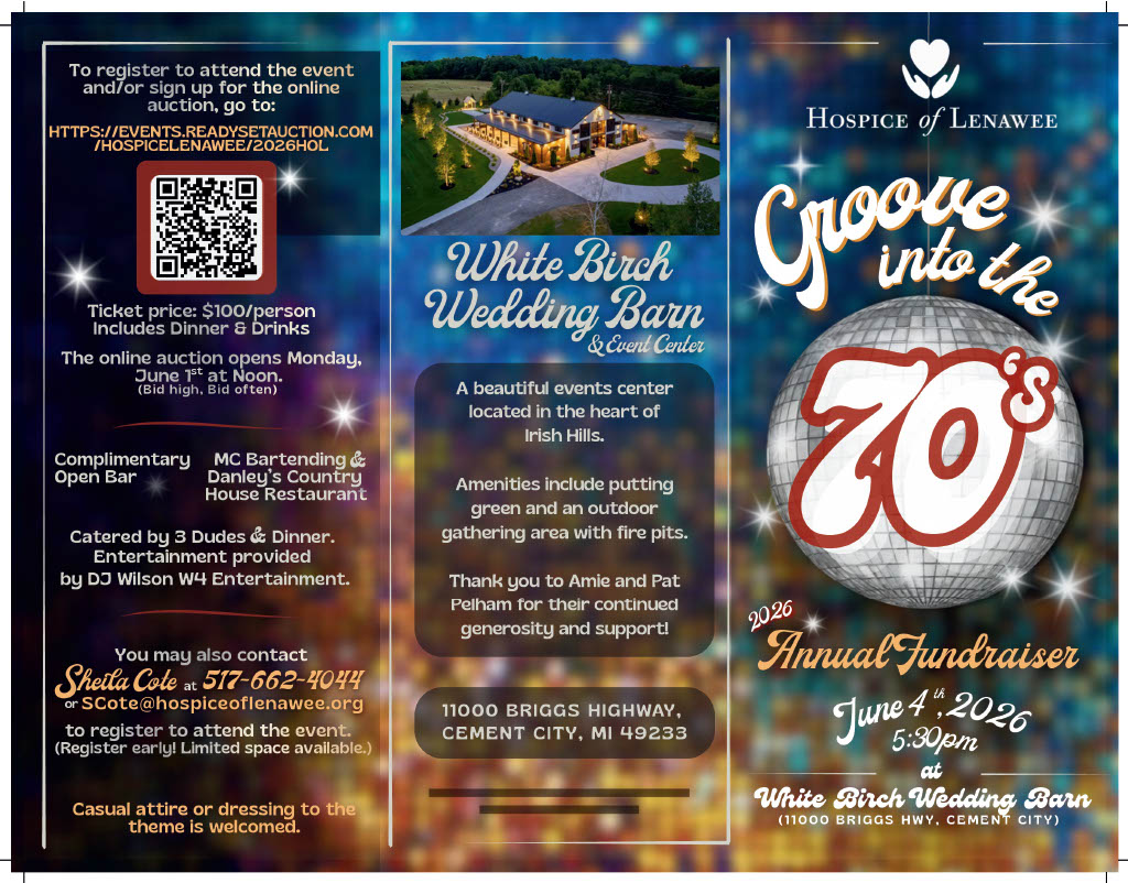 Hospice of Lenawee provides free aids and services to people with disabilities to communicate effectively with us, such as qualified sign language interpreters, written information in other formats (large print, audio, accessible electronic formats, other formats); and free language services to people whose primary language is not English, such as qualified interpreters and information written in other languages. If you need these services, please contact Hospice of Lenawee.